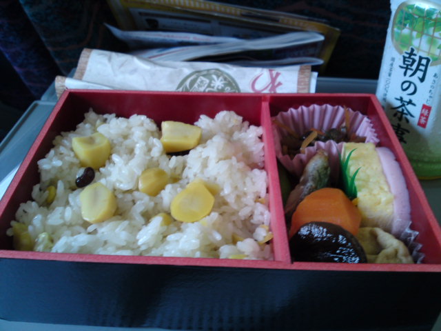 旅らしく駅弁なんて買ってみました。”栗おこわ弁当”みたいな名前でした私、確か。秋っぽいですが別段東北らしくも無いですね(笑)。
