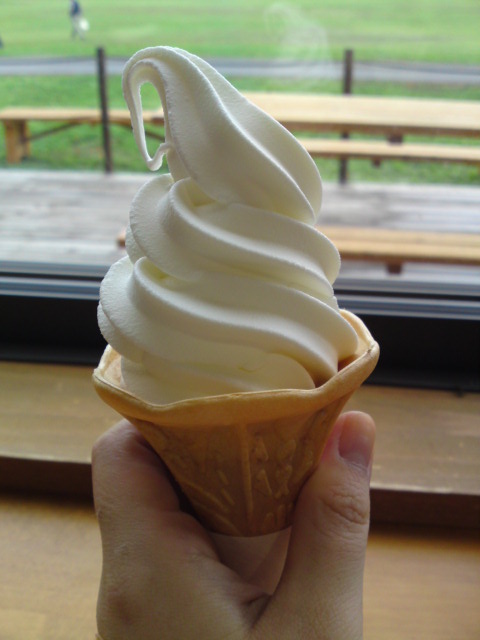 農場で食べたソフトクリーム。がっつり牛乳の味がして一口目は参りましたが(牛乳嫌い)、慣れると平気なもんでした。これを食べると、巷で売られているソフトクリームがどれだけ牛乳嫌いに優しいのかということがよく分かります。